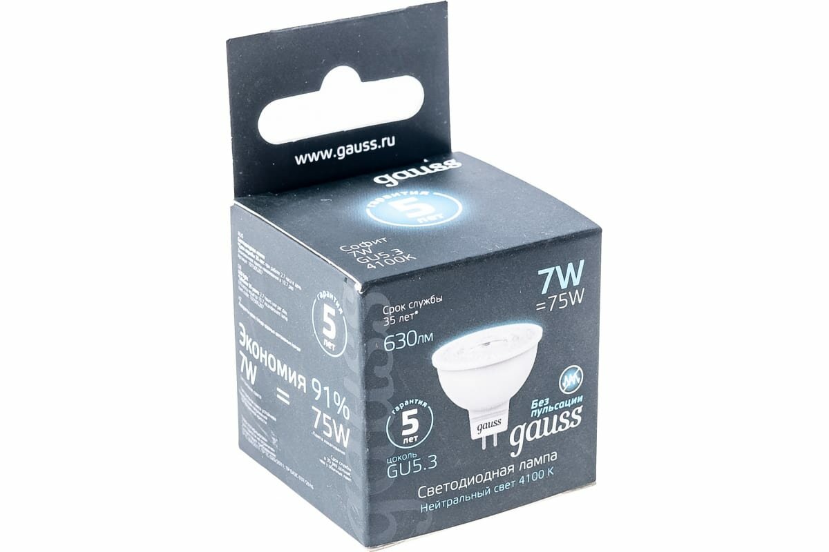 Отзывы на Светодиодная лампа Gauss Black 7W=75W 4100K 630Лм GU5.3 для спотов MR16 (комплект из 2 шт)