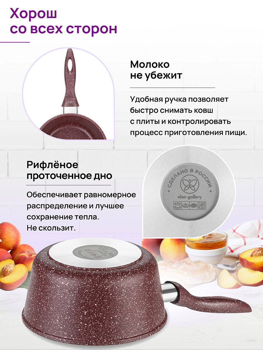 Ковш Elan Gallery Гармония вкуса Рубин 1,2л с антипригарным покрытием, с крышкой, с несъемной ручкой 1 795 ₽