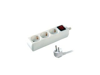 Удлинитель бытовой с выключателем Volsten 9328 с заземлением, 3 розетки, длина 3 м, ПВС 3х0,75, белый, 10 А, 2200 Вт
