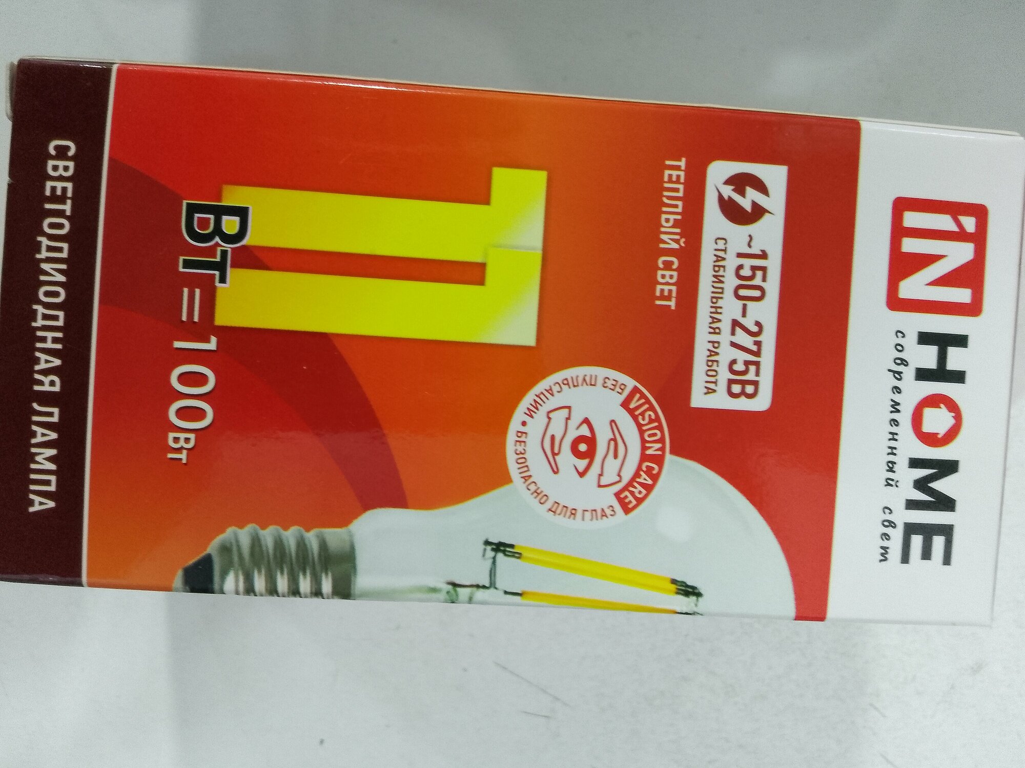 Отзывы на Лампа светодиодная LED-A60-deco 11Вт 230В Е27 3000К 990Лм филамент прозрачная IN HOME