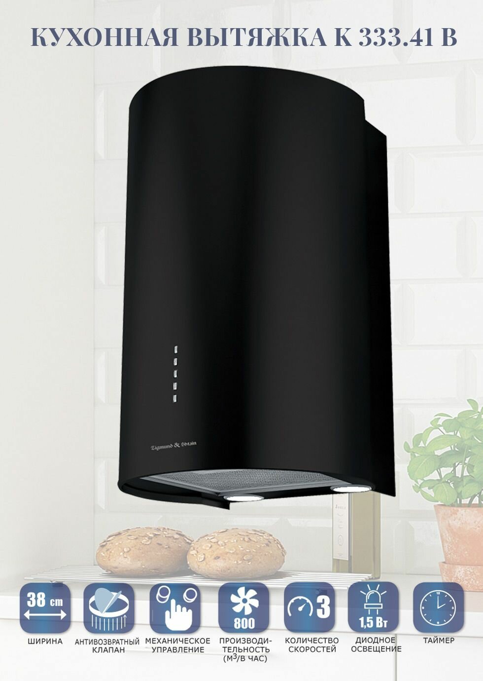 Каминная вытяжка Zigmund & Shtain K 333.41 B, 38 см, черная