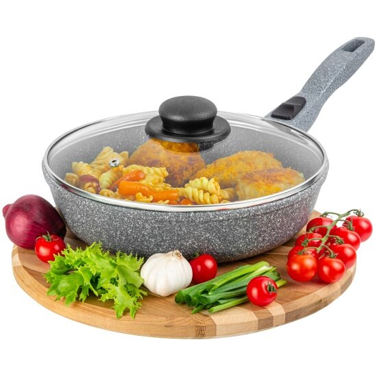 Отзывы на Сковорода глубокая Elan Gallery гармония вкуса Серый мрамор, с крышкой, съёмная ручка, 24 см