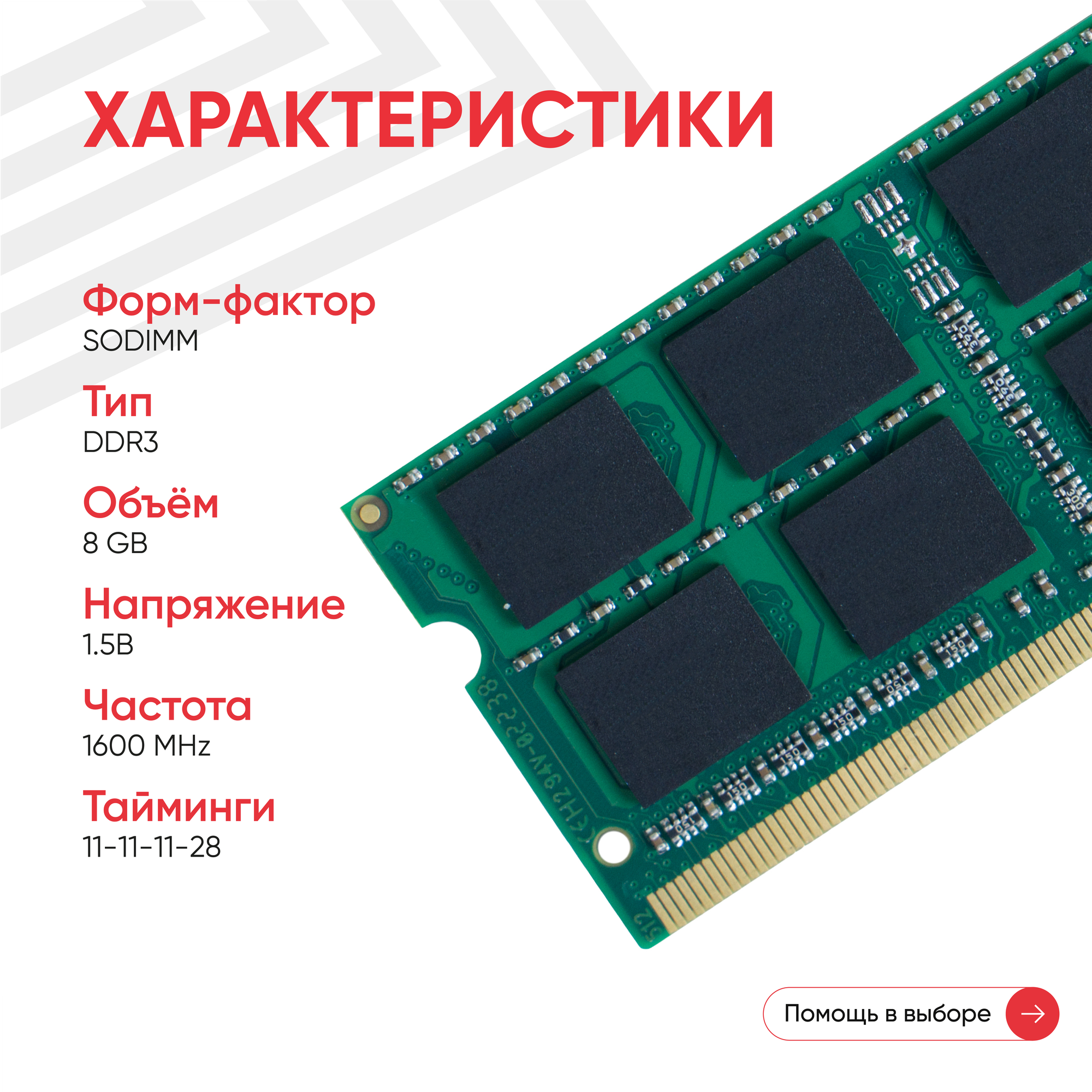 Модуль памяти Ankowall SODIMM DDR3, 8ГБ, 1600МГц, 1.5В, 204-pin, PC3-12800, CL11 11-11-11-28 1 395 ₽