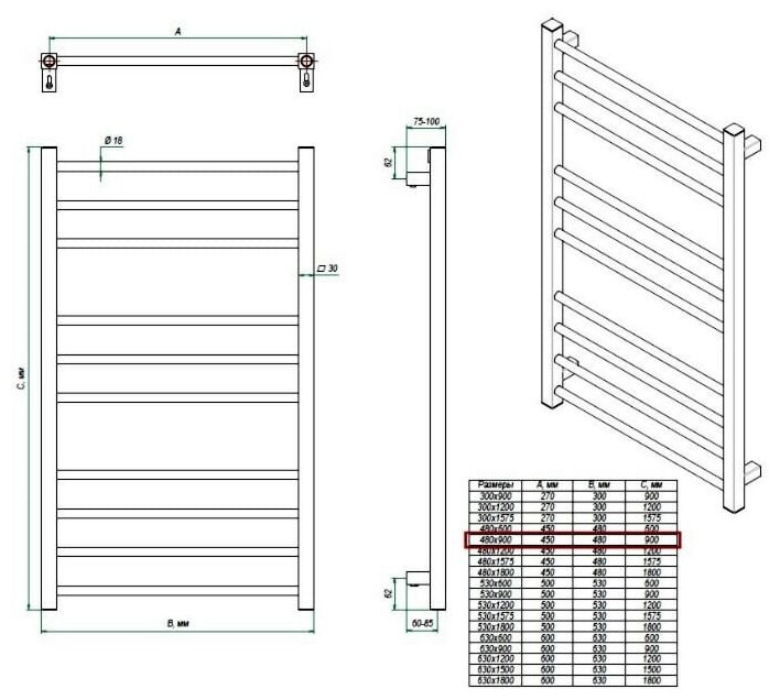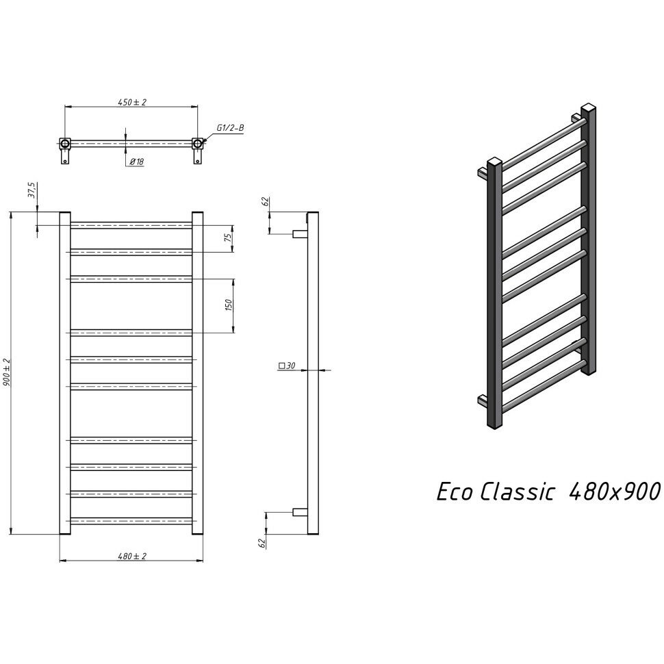 Электрический полотенцесушитель Grota Eco Classic 480x900 с терморегулятором информация: