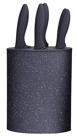 | Комплектация | нож поварской - 33 см, нож для хлеба - 31,5 см, нож разделочный - 31,4 см, нож универсальный - 23 см, нож для чистки овощей - 19,4 см, подставка - тубус из полипропилена |