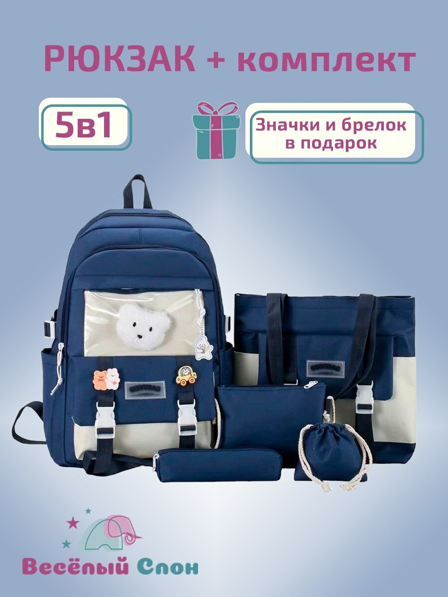 | Комплектация | Рюкзак,Сумка-шопер,косметичка,пенал,значки,брелок Мишка |