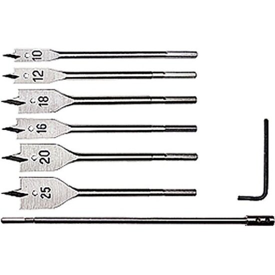 Набор сверл перовых по дереву, 10-12-16-18-20-25 мм, 6 шт., удлинитель 300 мм, MATRIX 70406