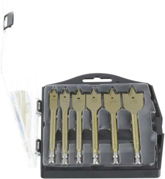 10 цен на Набор сверл перовых по дереву, 10-12-16-18-20-25 мм, 6 шт., пластик. кейс// Matrix