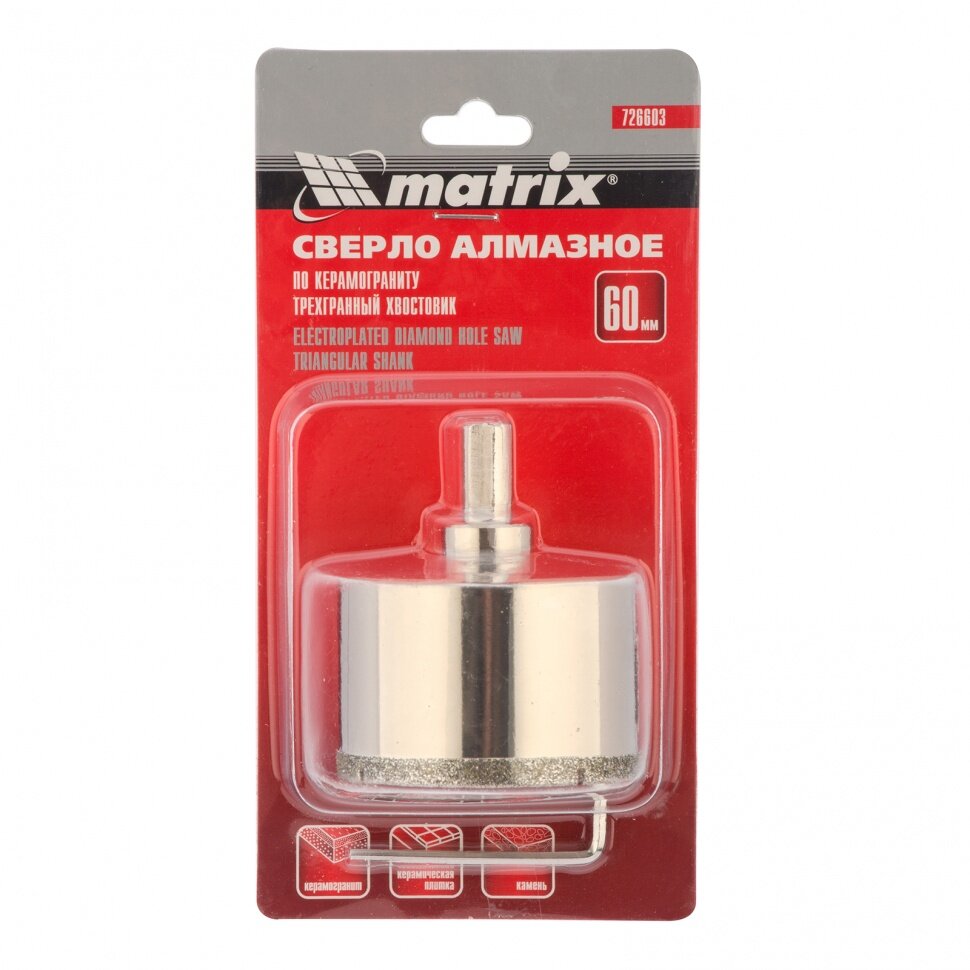 Отзывы на Сверло алмазное по керамограниту, 60 х 67 мм, трехгранный хвостовик Matrix 726603