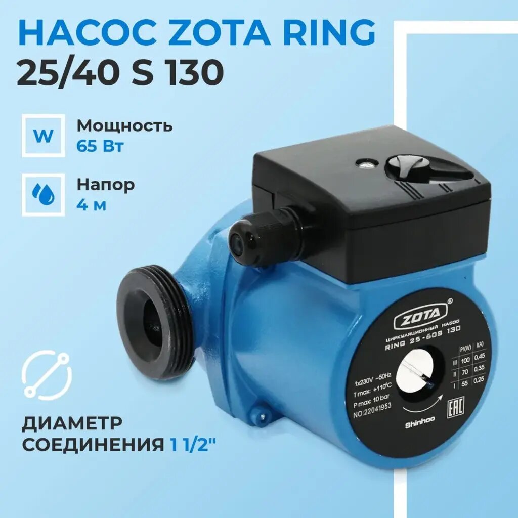 ZOTA Ring 25/40 S 130, циркуляционный насос для отопления, чугун, 1х230 В, 3 скорости информация:
