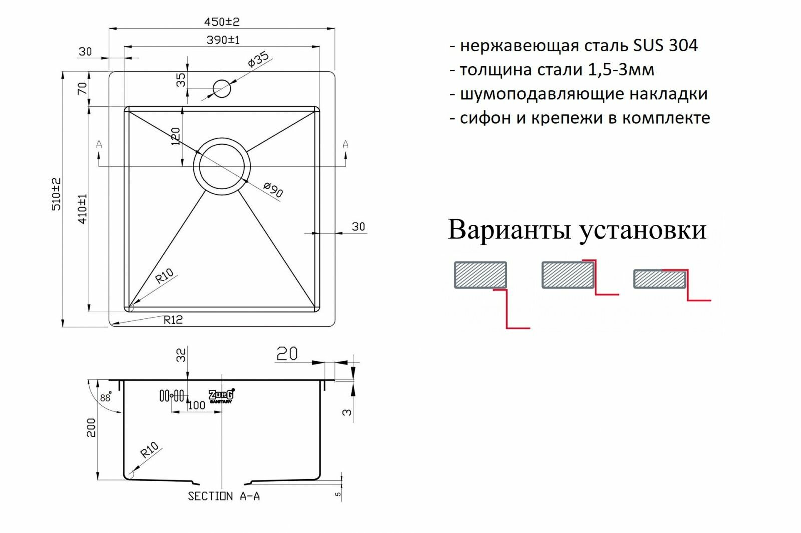 Мойка ZorG PVD-4551 GRAFIT информация: