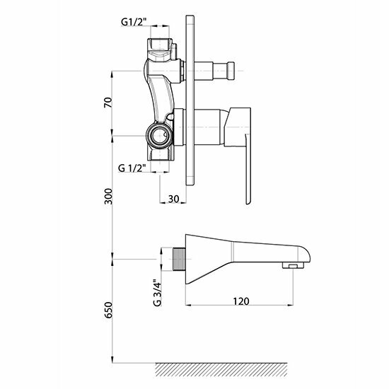 Смеситель для ванны с душем встраиваемый GPD Atros MAB65 с изливом, со скрытой частью 11 960 ₽