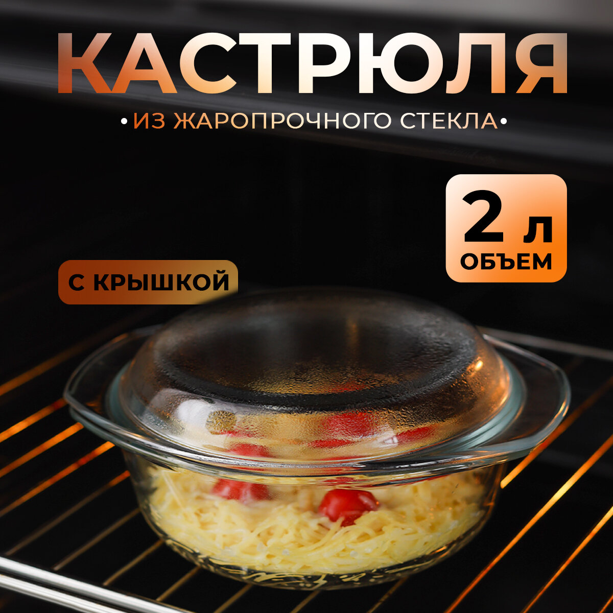 Кастрюля из жаропрочного стекла для запекания Доляна, 2 л, 25,5×22×6,2 см, с крышкой информация: