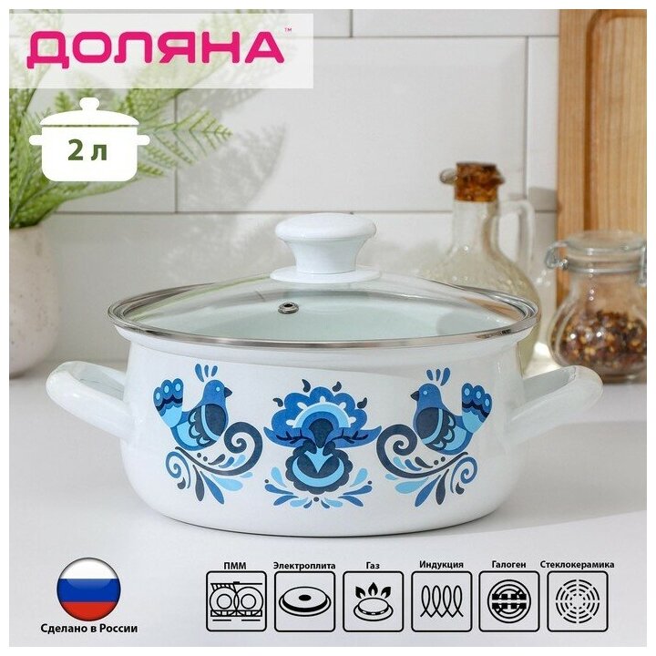 10 цен на Кастрюля «Свиристель», 2 л, стеклянная крышка, индукция, цвет белый