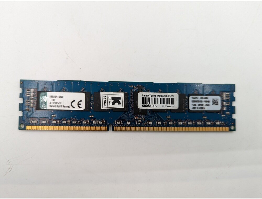Модуль памяти kvr16r11d8/8, DDR3, 8 Гб для сервера ОЕМ 1 580 ₽