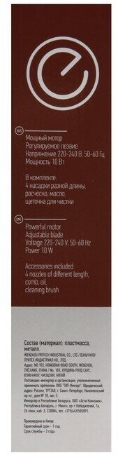 Машинка для стрижки ENERGY EN-708, 10 Вт, 3/6/9/12 мм, нерж. сталь, 220 В, красно-чёрная информация: