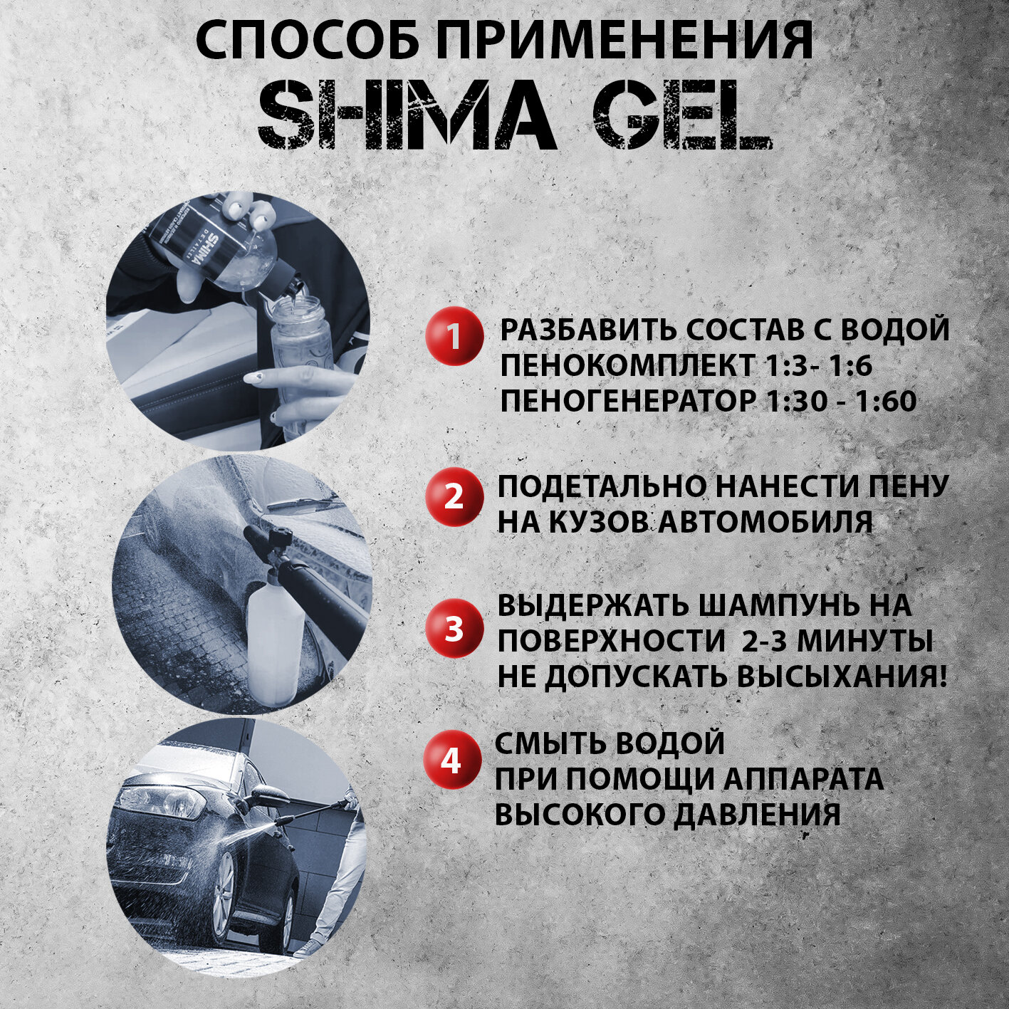 Автошампунь для бесконтактной мойки автомобиля SHIMA GEL 5 л информация:
