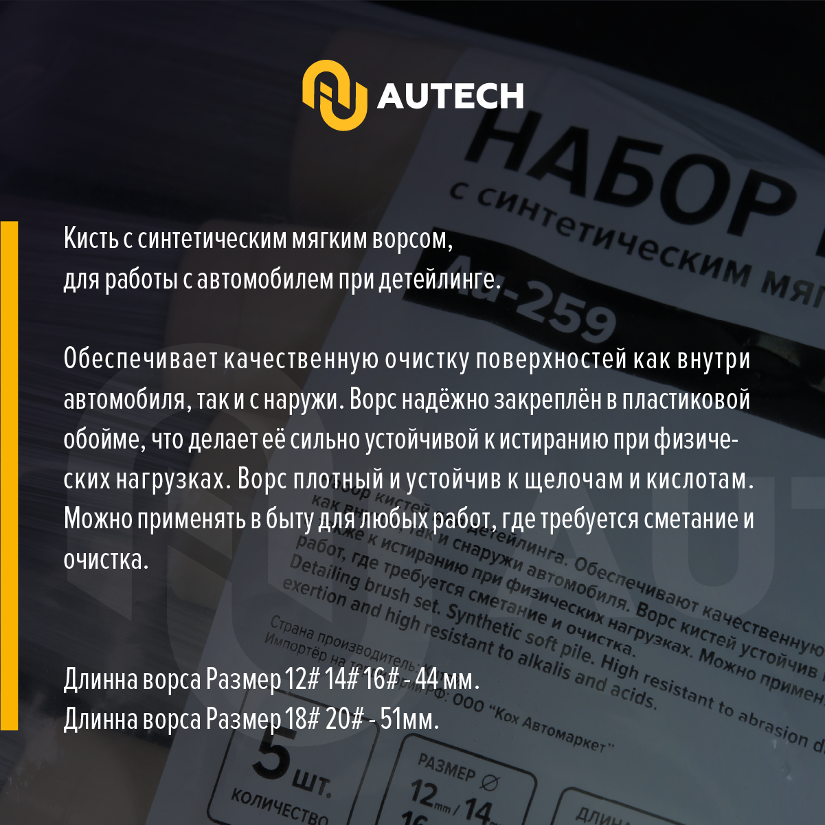 AuTech | Кисточки с мягким искусственным ворсом, комплект 5 шт. информация: