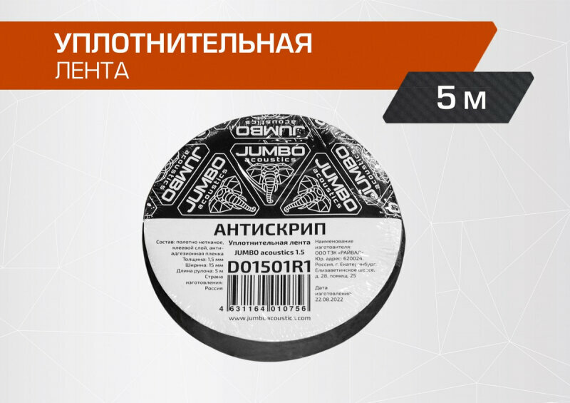 Уплотнительная лента / антискрип JUMBO acoustics шумоизоляция 1.5 1 шт. D01501R1 информация: