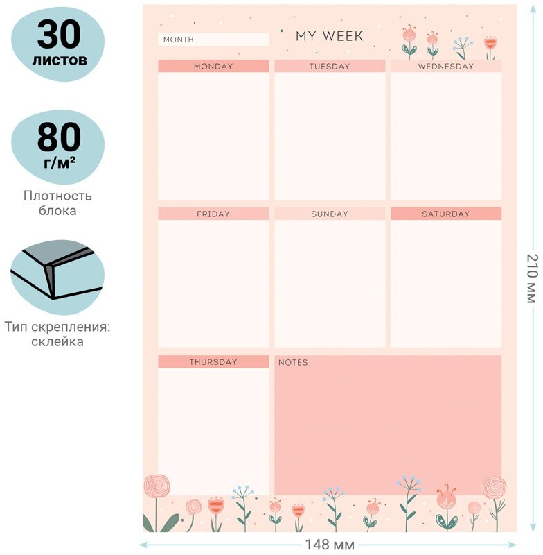 10 цен на Планер на неделю MESHU 210*148мм (А5), "Meadow", на склейке - 8 шт.
