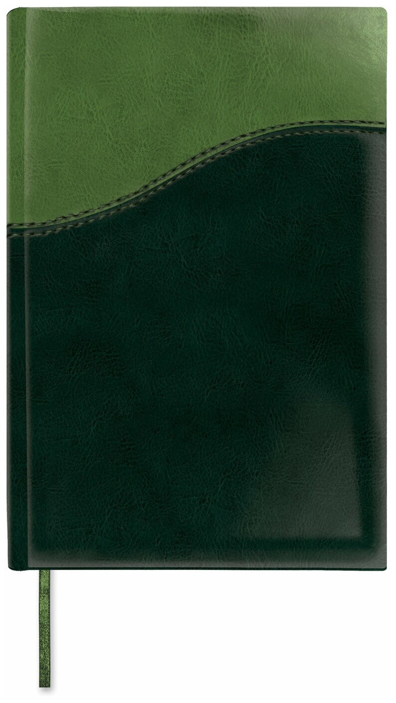 Ежедневник BRAUBERG недатированный, А5, 138х213 мм, Bond, под комбинированную кожу с волной, 160 л., зеленый/салат., 126219