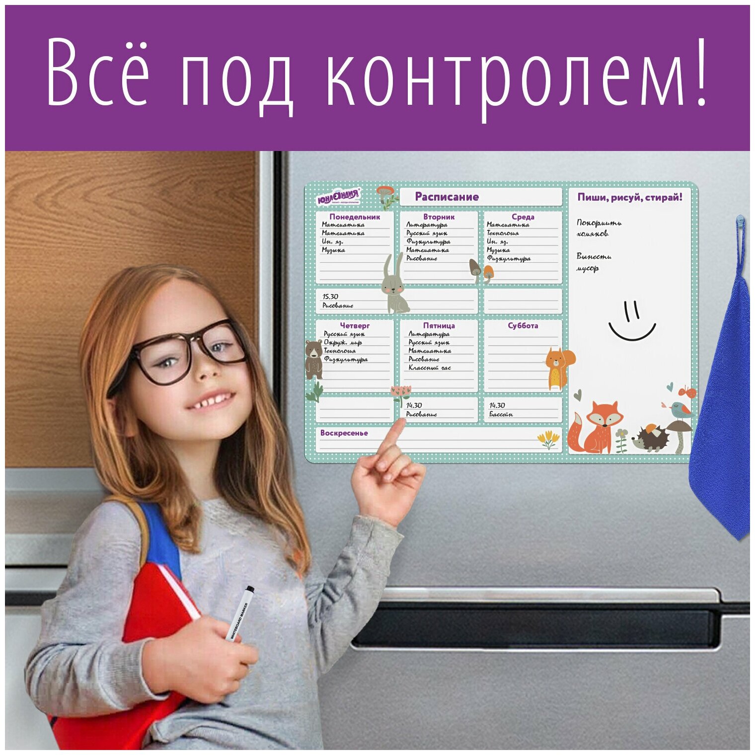 Планинг на холодильник магнитный расписание 42х30 см, с маркером и салфеткой, юнландия, 237851 (арт. 237851)