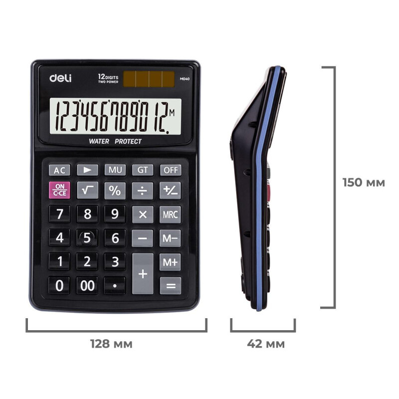 Калькулятор настольный комп. Deli EM04031,12-р,влагозащ,дв.пит150х128мм,чер