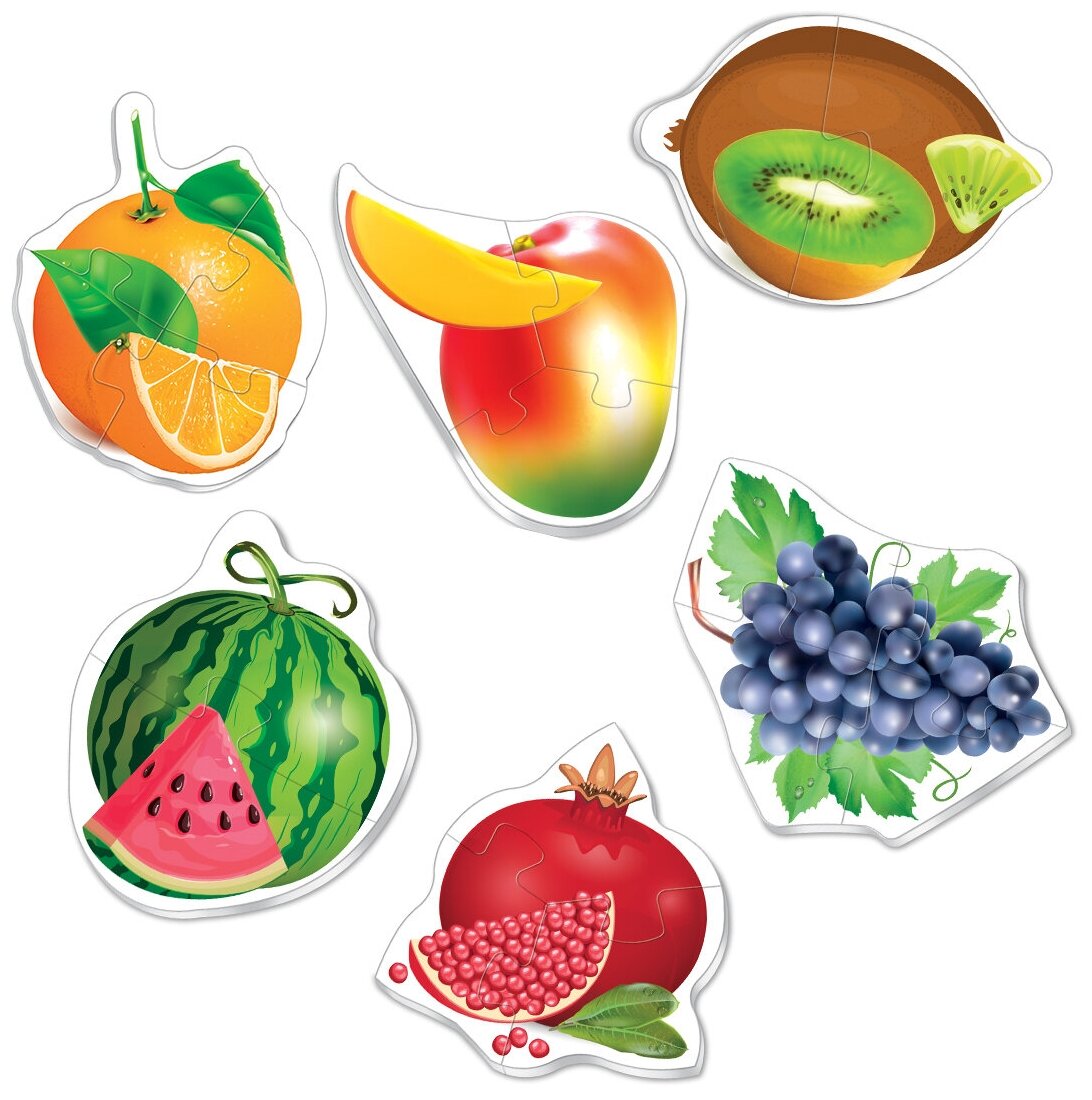 Развивающие макси-пазлы "Фрукты. Ягоды" для малышей, 6 картинок, 18 крупных деталей, развитие моторики, внимания и памяти