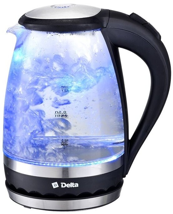 Чайник василиса ВА-1034, корпус из жаропр. стекла, черный: 1500 Вт, 1,8 л