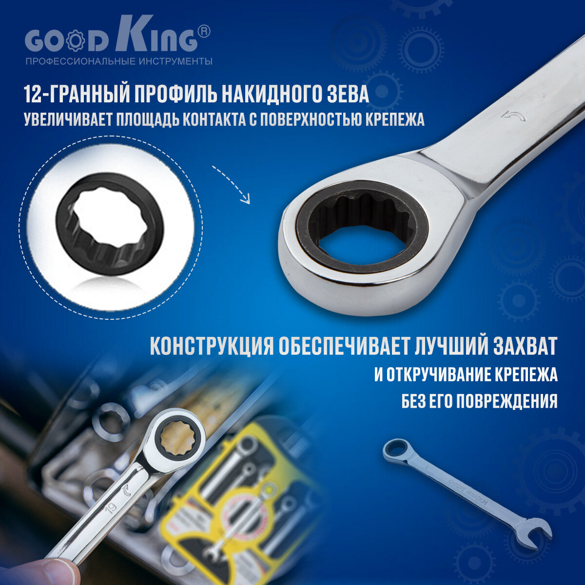 Набор ключей комбинированных трещоточных Goodking TK-1007, 7шт 1 785 ₽