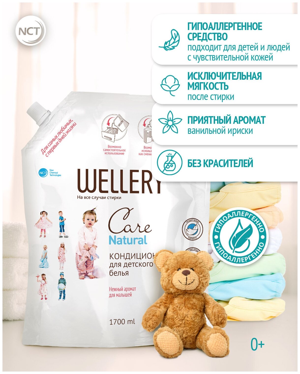 Гипоаллергенный кондиционер для детского белья "WELLERY Care Natural" ириска, дой-пак 1,7л информация: