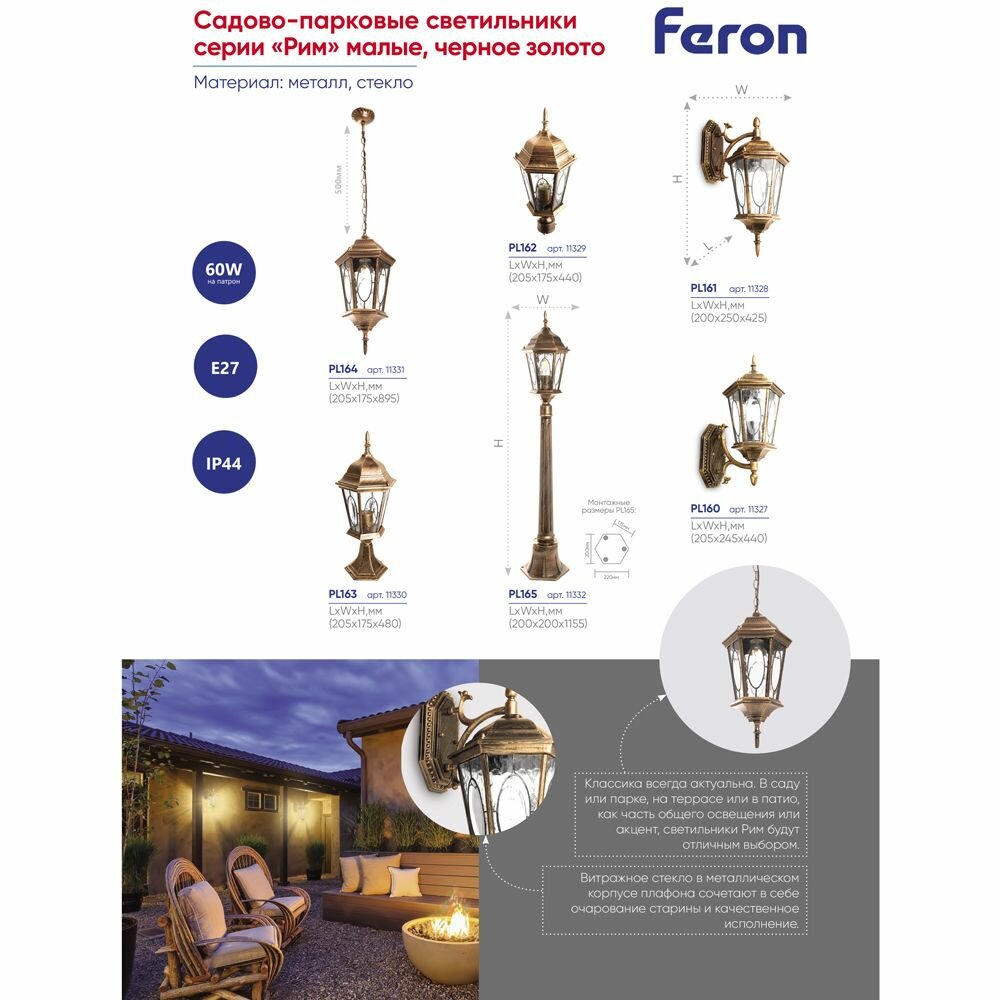 Светильник уличный Feron Рим , 11327, 60W, E27