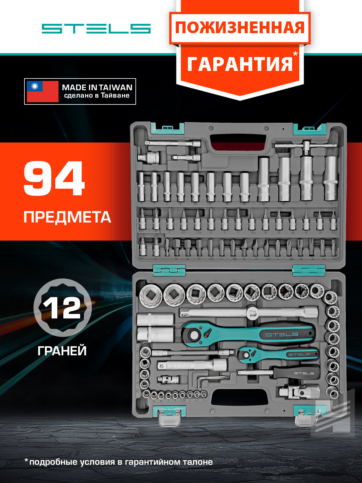 Набор инструментов 1/2" Stels 1/4", CrV, 12 гранные головки, 94 предмета 14118 информация: