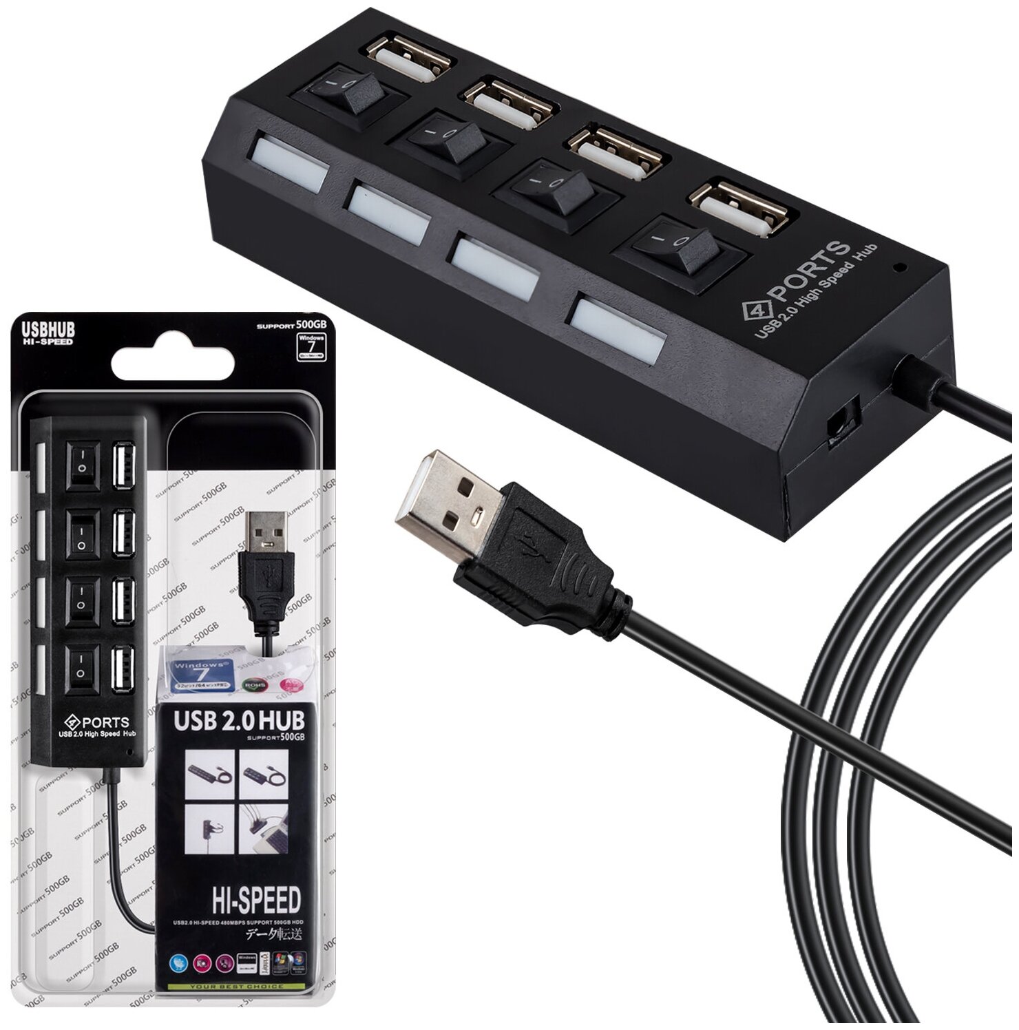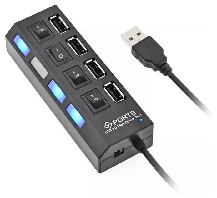 10 цен на USB-разветвитель 4 порта с индивидуальными выключателями, черный