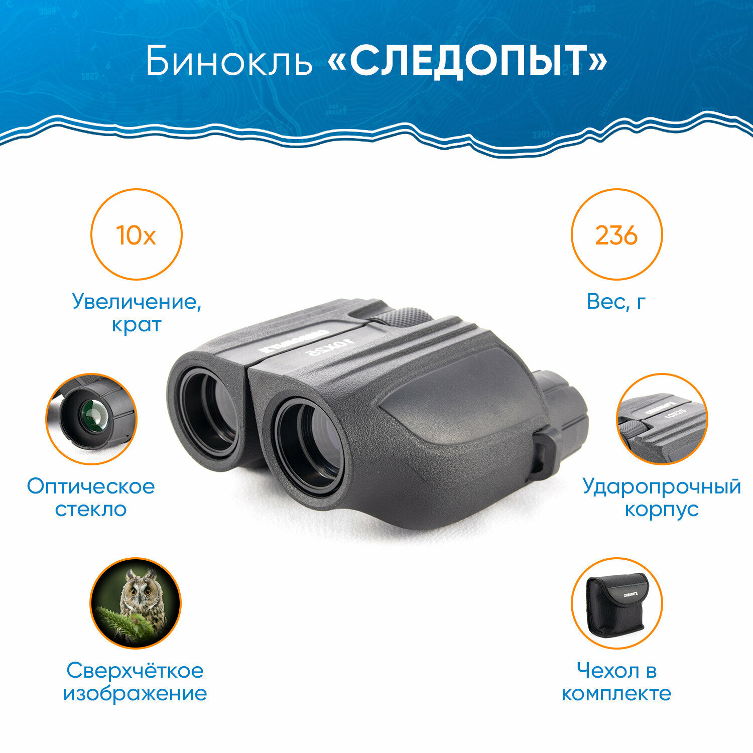 Бинокль Следопыт, 10х25, черный, в чехле .