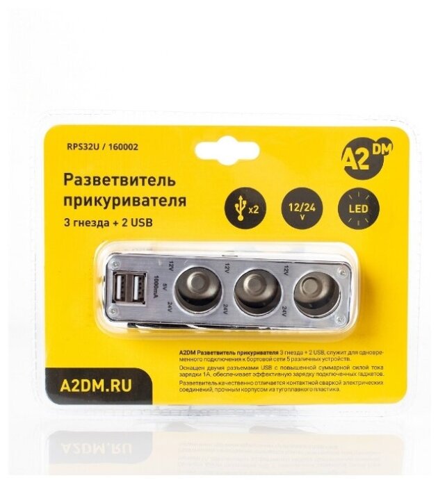 Разветвитель прикуривателя A2DM 021 3 выхода + 2 USB, 12/24 В 160002 информация: