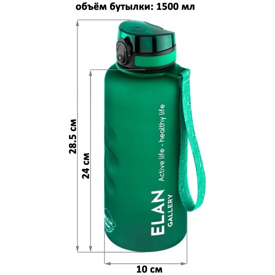 10 цен на Бутылка Elan Gallery для воды 1,5 л 10*10*28,5 см "Style Matte" с углублениями для пальцев темно-зеленая (280156)