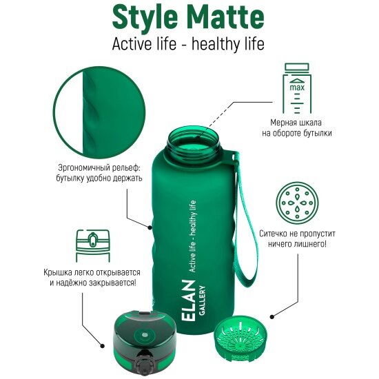 Отзывы на Бутылка Elan Gallery для воды 1,5 л 10*10*28,5 см "Style Matte" с углублениями для пальцев темно-зеленая (280156)