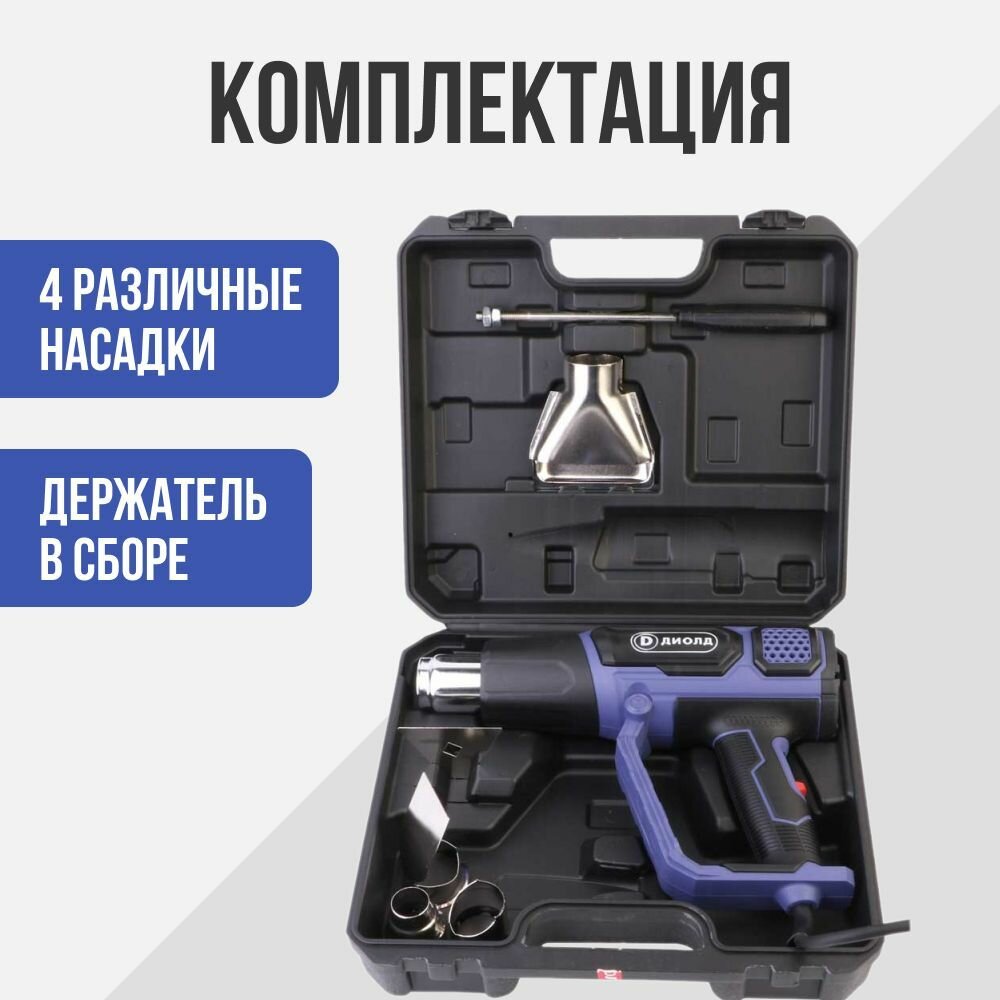 Фен строительный технический диолд ВГВ-2-01, 2000 Вт, плавное изменение температуры, 4 насадки, 60-600 градусов, производитель Россия 3 480 ₽
