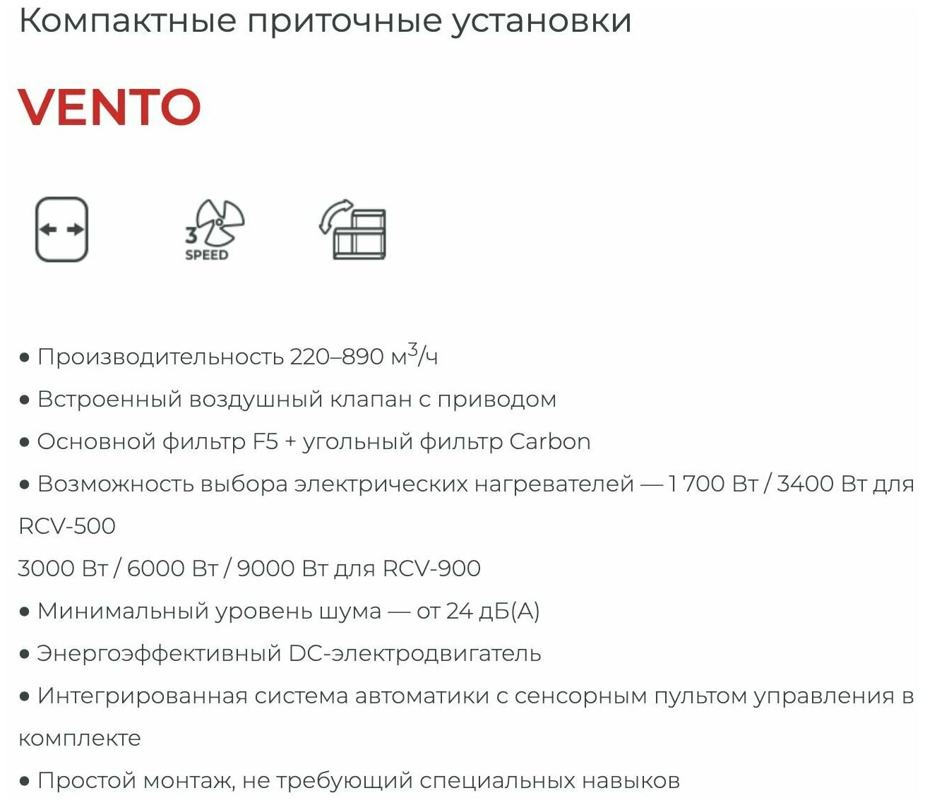 Приточная Установка с WiFi Royal Clima VENTO RCV-500 LUX с нагревателем EH-1700Ватт/220V, Производительность 495м3/ч информация: