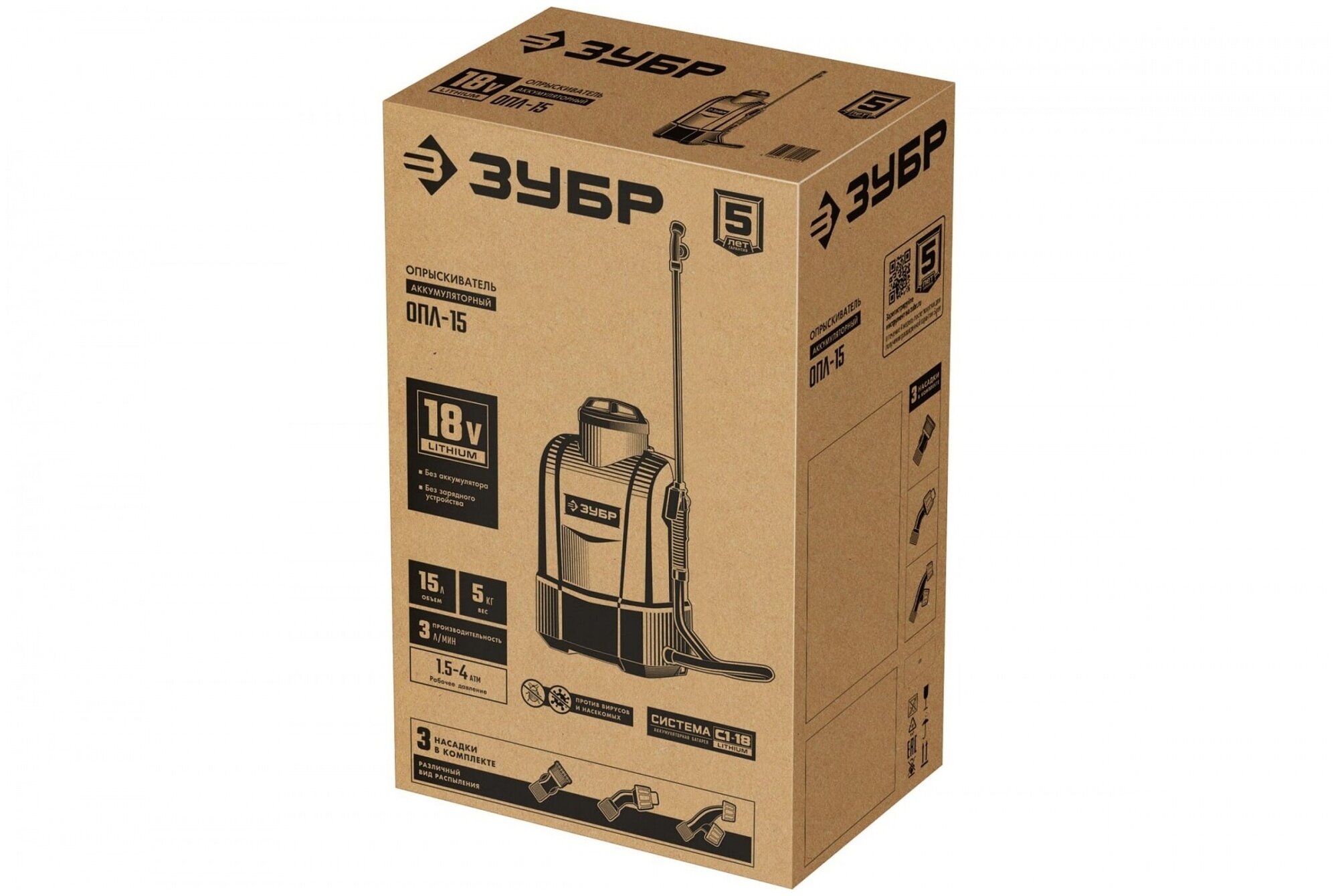 ЗУБР 15 л бак, без АКБ, опрыскиватель аккумуляторный, Li-Ion 18В ОПЛ-15