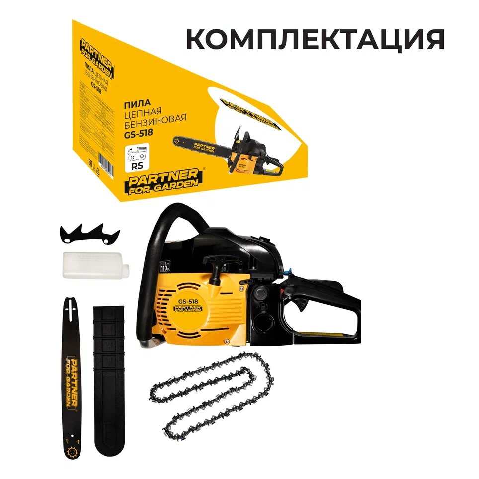 Бензиновая цепная бензопила Partner For Garden GS518, 3,5 л/с, 45см информация: