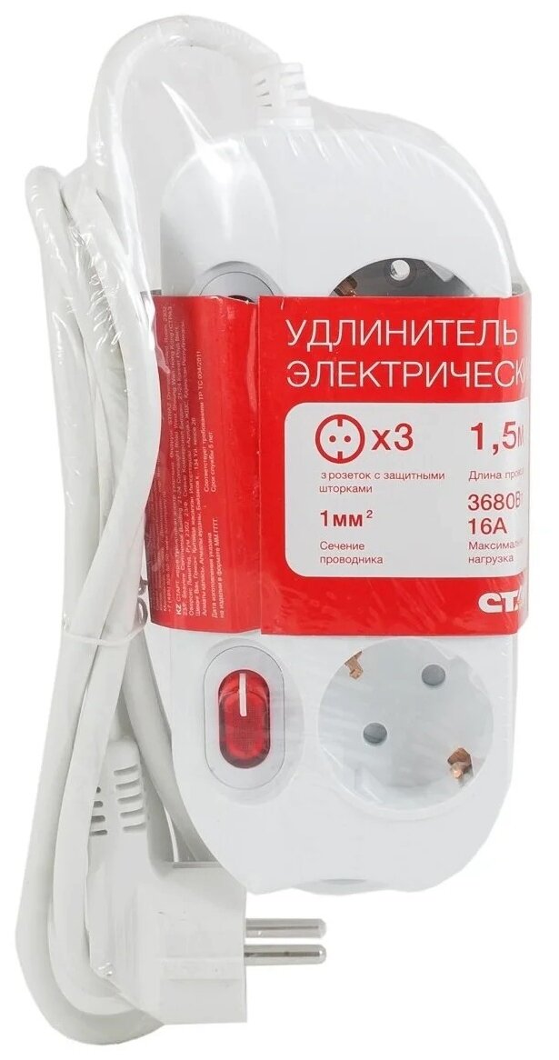 Отзывы на Удлинитель бытовой 3 гн. с з/к 1,5м с индивидуальными кнопками выключения ПВС 3х1мм2 старт 11546