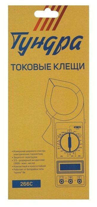 Токовые клещи тундра, 266C, ACV/DCV, ACA, 200-2МΩ, изоляции 20-2000MΩ, 0-750°C./В упаковке шт: 1