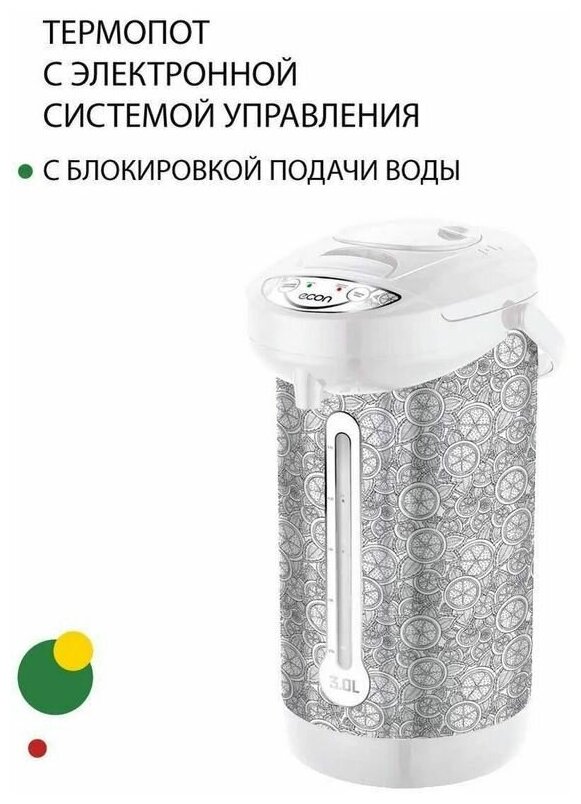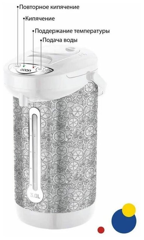 | Особенности | рисунок на корпусе / двойные стенки / вращение на 360 градусов / индикатор уровня воды / съемная крышка |