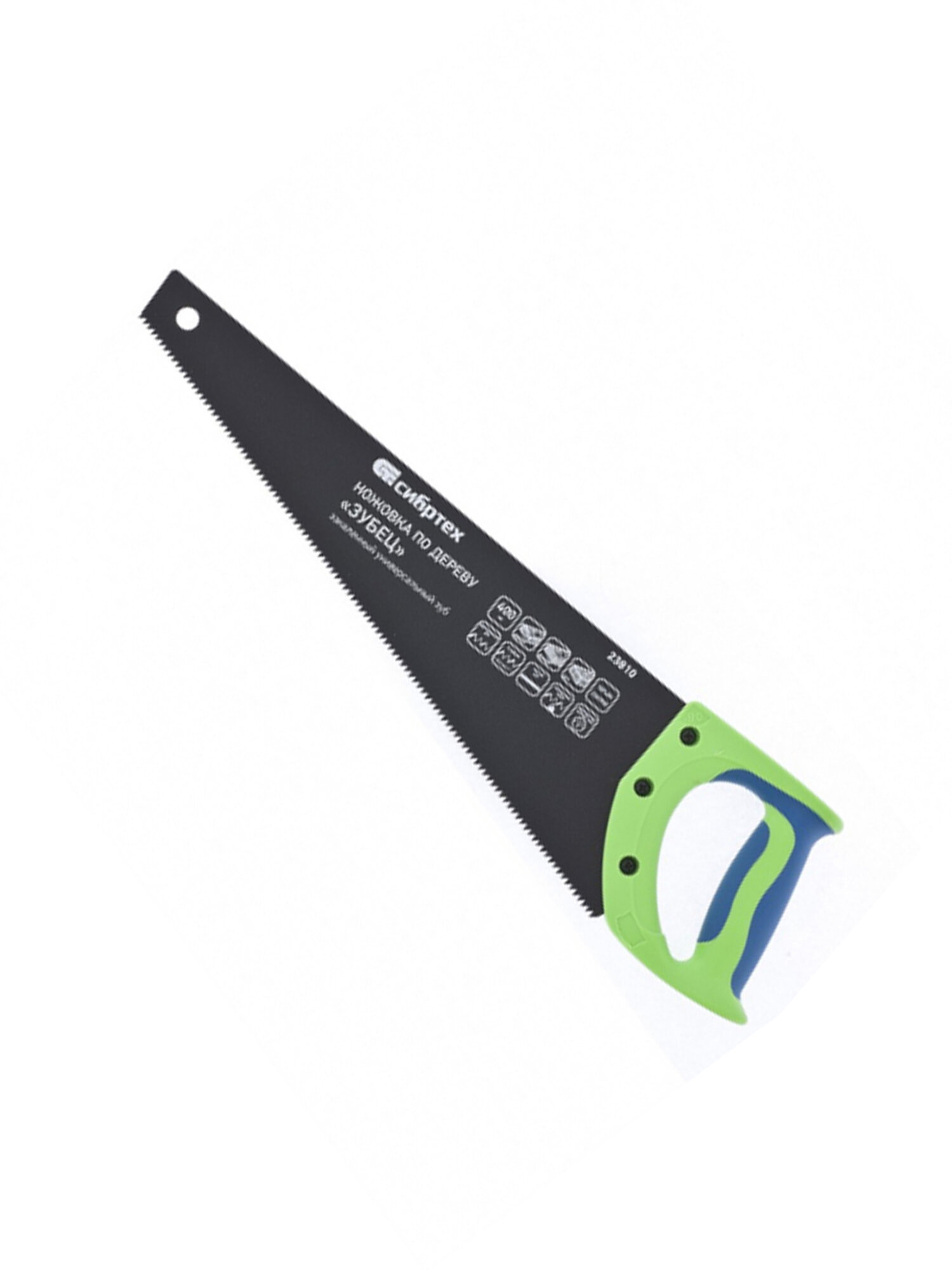 Ножовка по дереву "Зубец", 400 мм, 7-8 TPI, зуб 2D, кал.зуб, защ. покр., 2-х комп. рук-ка, СИБРТЕХ 23810