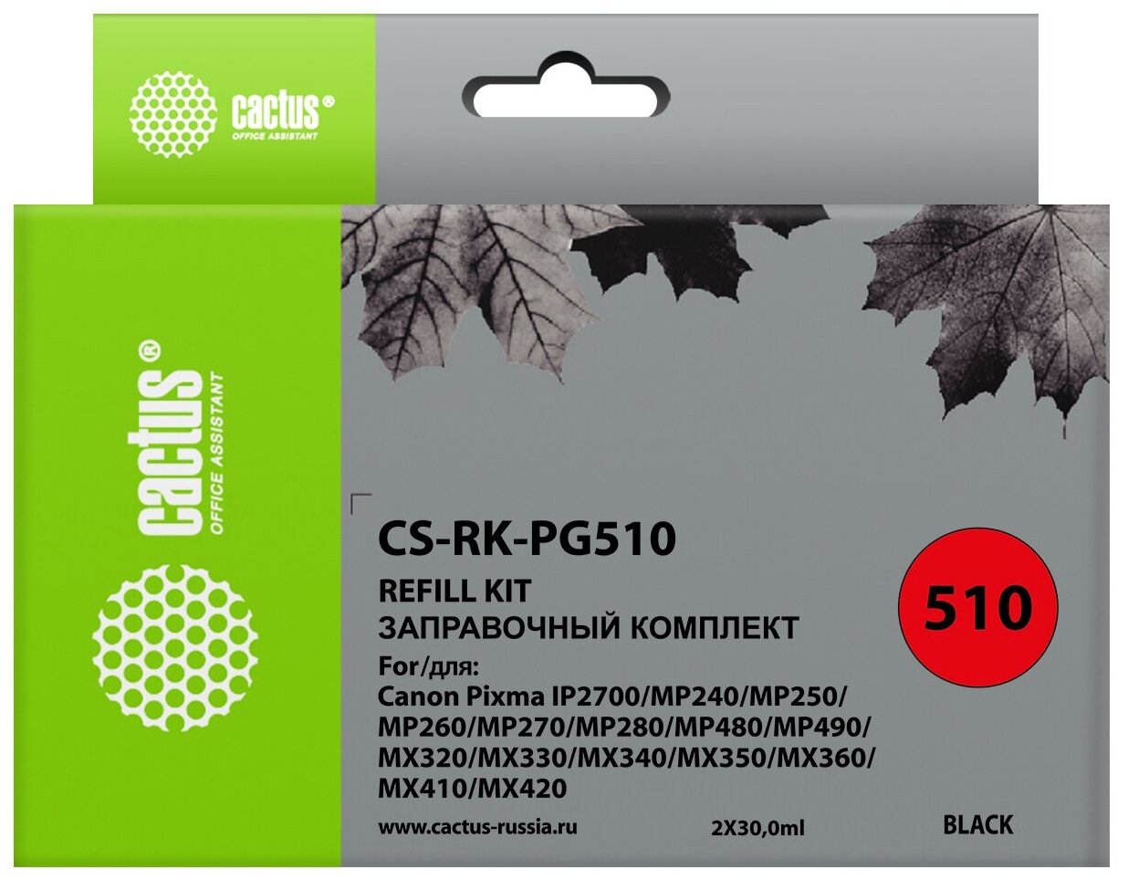Заправочный набор CACTUS CS-PG-510 черный (2x30мл) Canon MP240/ MP250/MP260 информация: