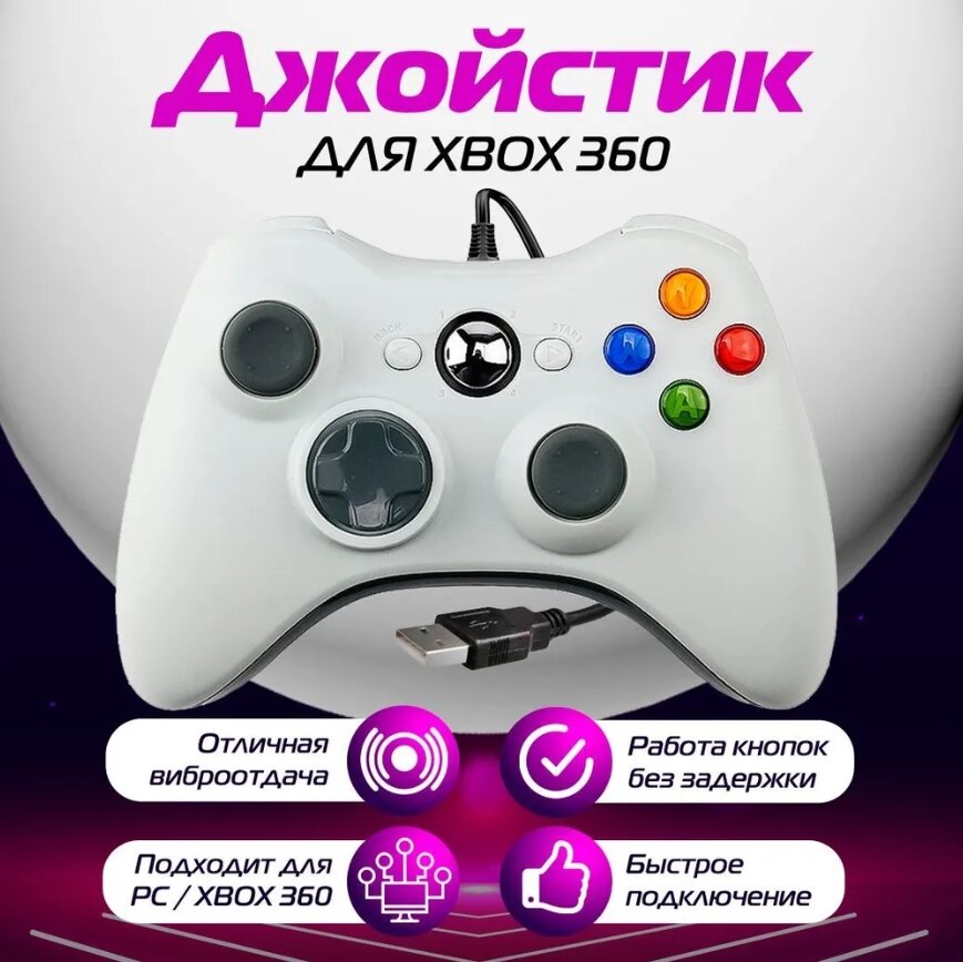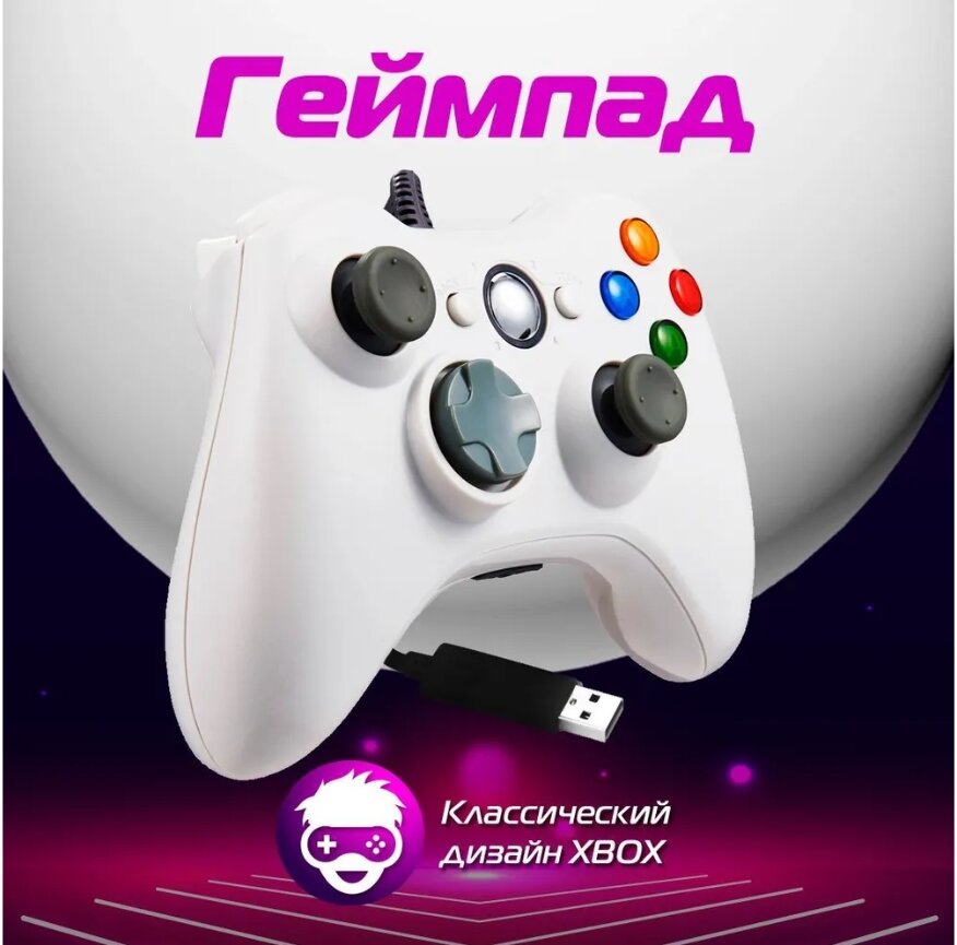 Геймпад (gamepad) проводной для Xbox 360 и PC, белый информация: