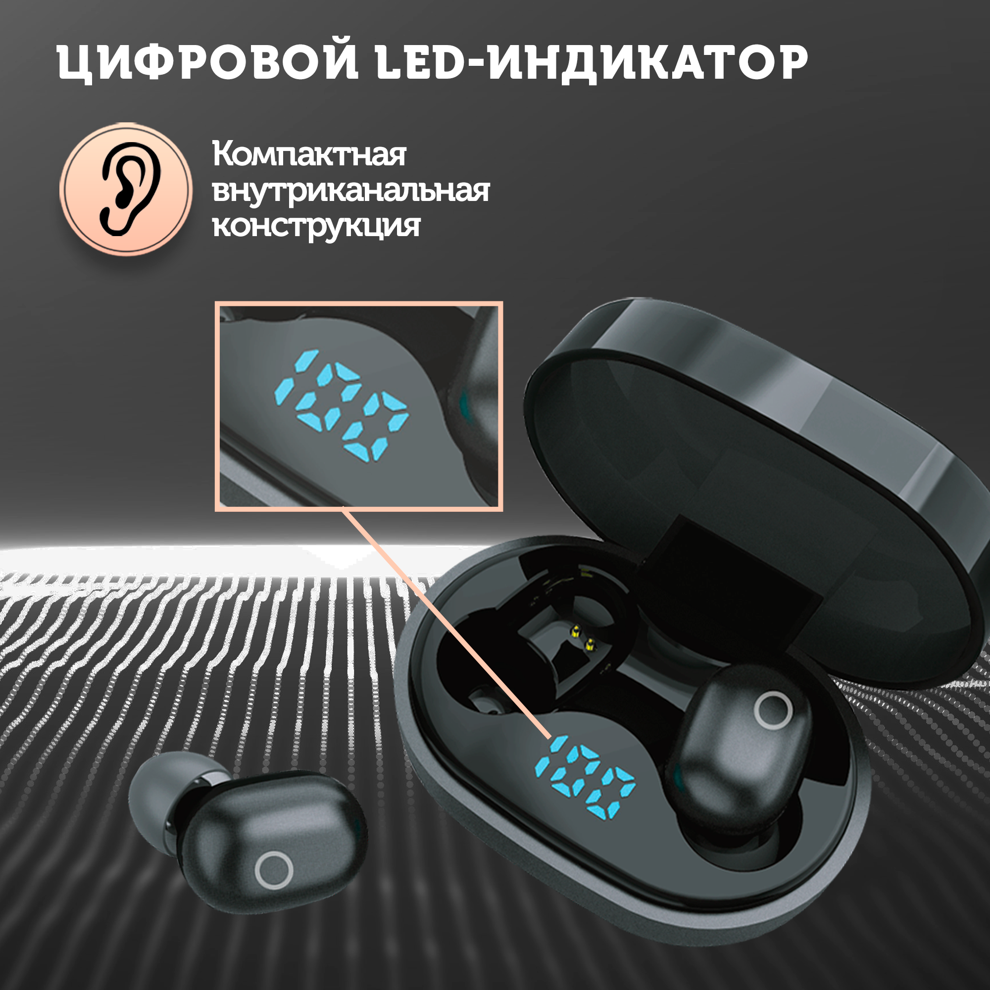 Беспроводные вакуумные наушники Bluetooth с микрофоном, сенсорное управление, индикатор заряда, AMFOX, WTS-11, черные / гарнитура TWS для телефона