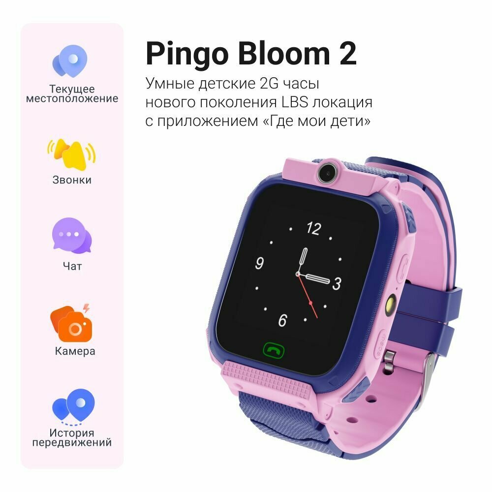 Умные часы для детей c SIM - Где мои дети Pingo Bloom 2: GSM геолокация, звонки, камера, SOS, русификация 2 338 ₽